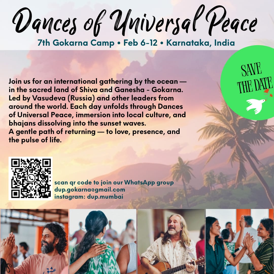 7ème Camp des DUP en Inde du Sud à Gokarna, un endroit idyllique près de la mer, une salle de danse entre terre et ciel…..une rencontre internationale qui rassemble non seulement les guides et danseurs(ses) de l’Inde mais aussi de plusieurs pays: Russie, France, Angleterre, Turquie…..etc