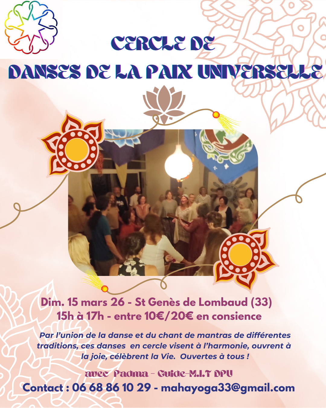 Cercle de Danses de la Paix Universelle de 15h à 17h à à Saint Genès de Lombaud (20km de Bordeaux) suivi d’une pause gourmande partagée !