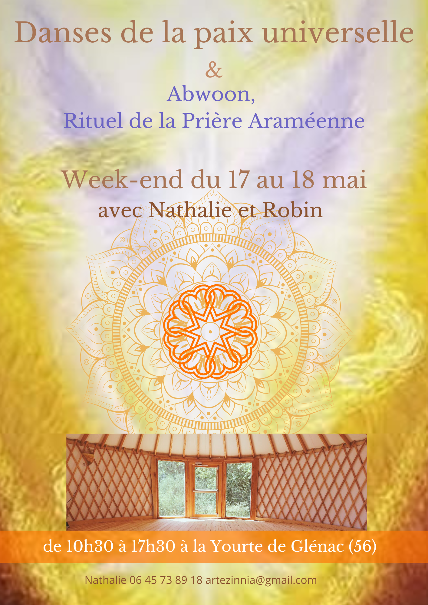 Bienvenue au weekend de Danses de la Paix Universelle et rituel Abwoon dans la yourte chaleureuse de Glénac entourée de verdure !