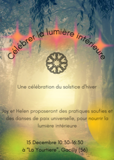 Nous vous invitons à célébrer la lumière intérieure lors d’une journée spéciale de Danse de la Paix et de Méditation Soufie, guidées par Joy et Helen.