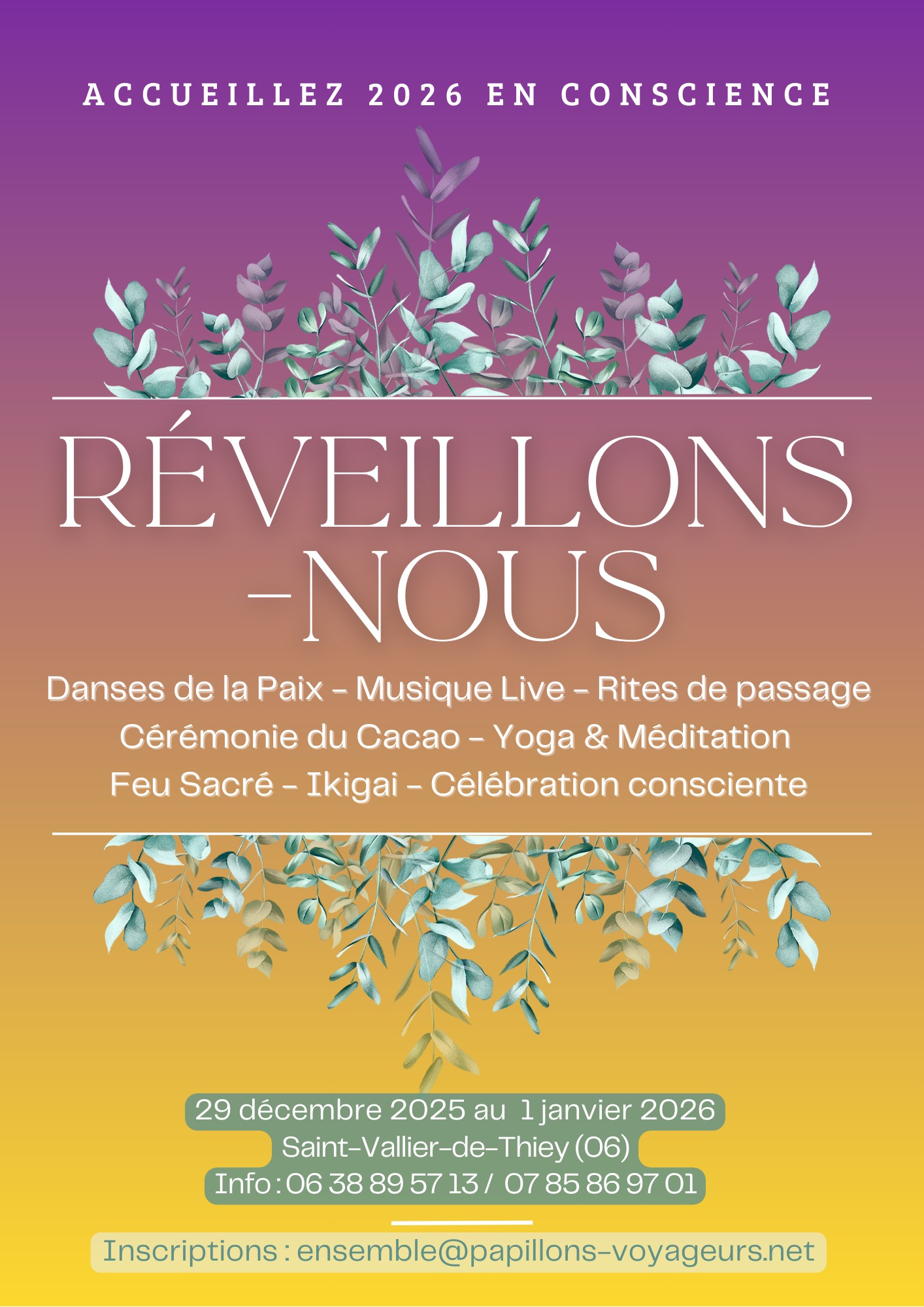 ・Célébration consciente le soir du 31 décembre pour accueillir 2026 dans la joie et la bienveillance