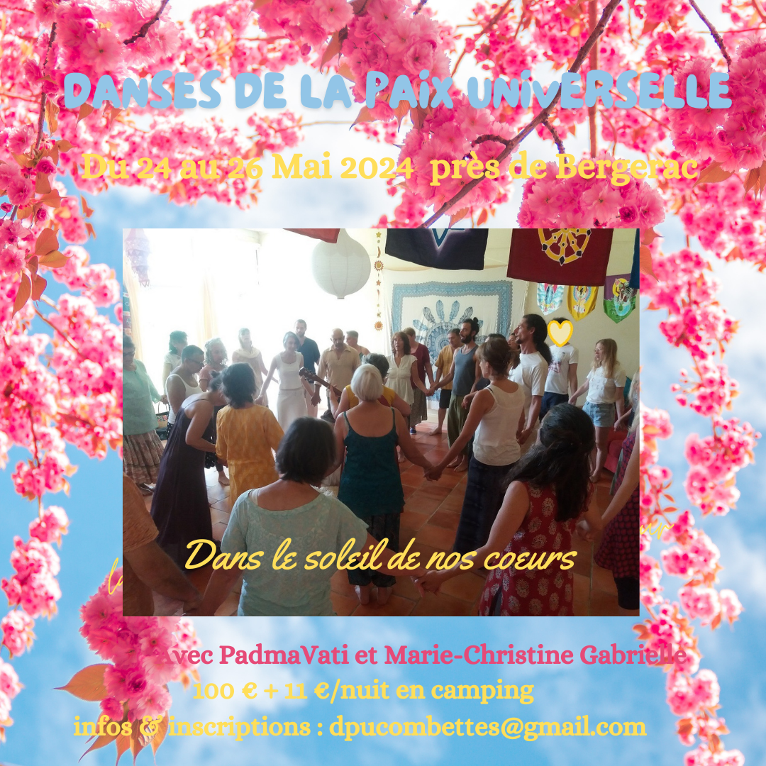 Les danses de la Paix Universelle puisent dans le répertoire de chants sacrés de nombreuses traditions : soufis, bouddhistes, juifs, chrétiens, peuples premiers,…Nous chantons et dansons, souvent en cercle ; les danses sont variées, certaines toniques, d’autres contemplatives, favorisant notre lien à nous-même, aux autres, à l’univers, au divin.